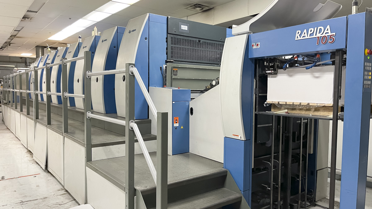 Size: 74 x 106 cm, Straight 8/0 press – no perfector, CX package – Max. factory thickness of .048''. FEEDER: Sensoric Infeed System (SIS) – Infeed without Side Guides,Sheet Cleaner, Kersten High Performance Static Elimination for Feeder & Infeed. PRINTING/INKING UNITS: Combi-Rollers-Boettcher Chameleon–for use with Hybrid Inks, Fully Automatic Plate Change, Simultaneous Plate Change, Print Unit Preparation for Hybrid/UV. WASHING SYSTEM: Dual Wash-up System (For use withHybrid press, Automatic Blanket, Roller and Impression Wash,Baldwin Blanket, Roller and Impression Wash. COOLINGSYSTEM: Multizone Technotrans Combi-cooling Unit,External Condenser. COATING: Air Cleaning System for Hybrid/UVCoating, Harris and Bruno Coating Heating Device,