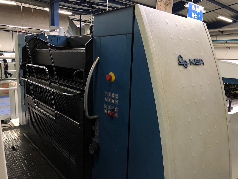 Size: 75 x 106 cm, 18,000 SPH, CX package up to 1.2 mm thickness, ErgoTronic console with ColorTronic ink metering, X-Rite color measurement, FAPC fully-automatic plate change incl. pneumatic plate bending device, KBA Non-Stop-Feeder, automatic, Kersten anti-static device, high-performance version, Dust removal at feeder, Intercom, Cardboard equipment with mechanical guide elements (> 600 g/m2), Sheet travel control, Inking unit temperature control incl. doctor cooling, Hickey Picker, Elettra washing device for blanket- and impression cylinder & roller washing for simultaneous washing processes, Coating unit (L) Harris & Bruno chambered doctor blade for conventional coatings, Quick action plate clamps, Harris & Bruno coating supply.