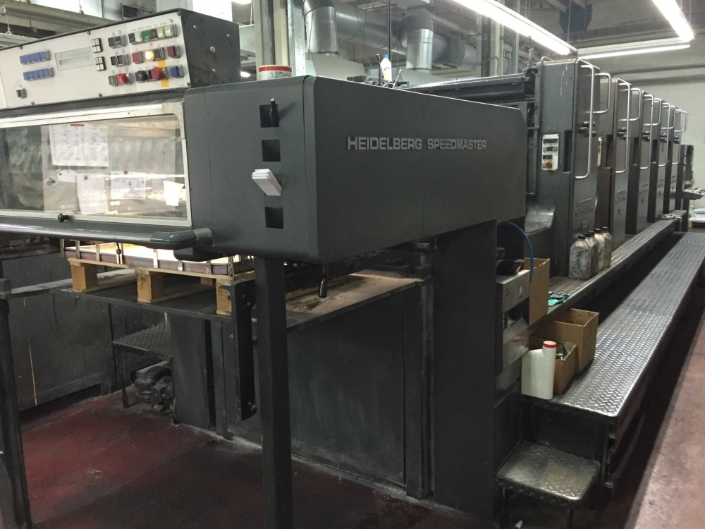 Size: 70 x 100 cm – High pile delivery – Thickness 0.08 – 1 mm – Speed 13 – 000 sheets / hr – Steel plate on feeder and delivery with ramp (for plastic or wooden pallets) – Stream feeder with belt – Electronic double sheet detection- Electromechanical double sheet detection- Electronic side lay control – photoelectronic and acoustic- Anti-static on feeder and delivery- Alcolor continuous dampening system with Technotrans's alcohol metering; cooling and re-circulation unit system- Preset (automatic paper size and thickness setting) – CPC 1.03 + CPTronic Center with touch screen control and diagnosis; self diagnostic; Remote inking; dampening; axial – circumferential and diagonally register control with light pen; day light illuminator